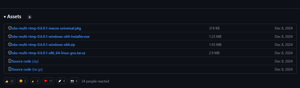 Multiple RTMP outputs plugin» можно скачать по ссылке с репозитория github. Выбирайте необходимый файл для вашей системы: для windows exe или для maocos pkg.